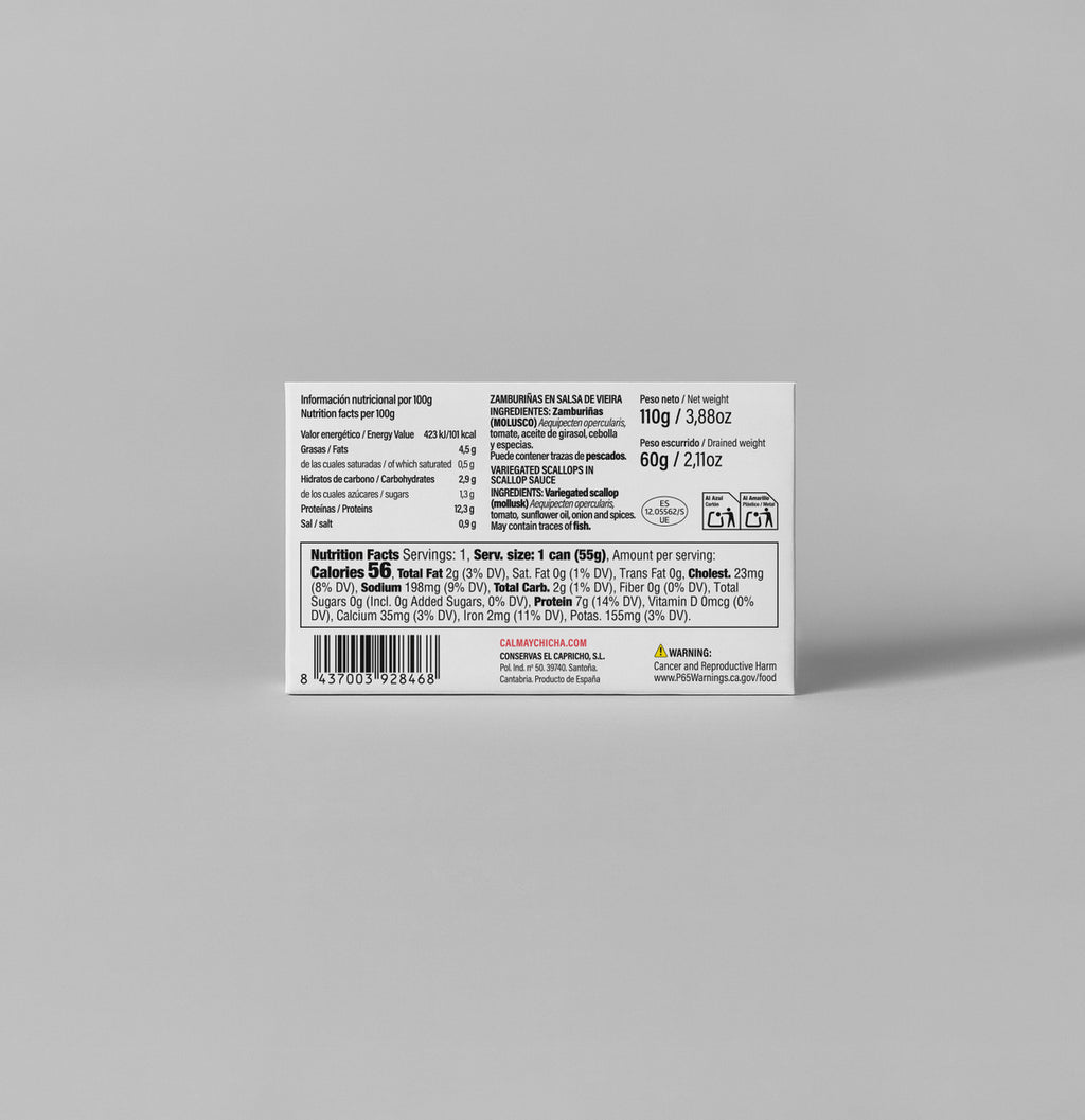 Calma & Chicha Scallops in Sauce 14/18, Conservas del Norte.